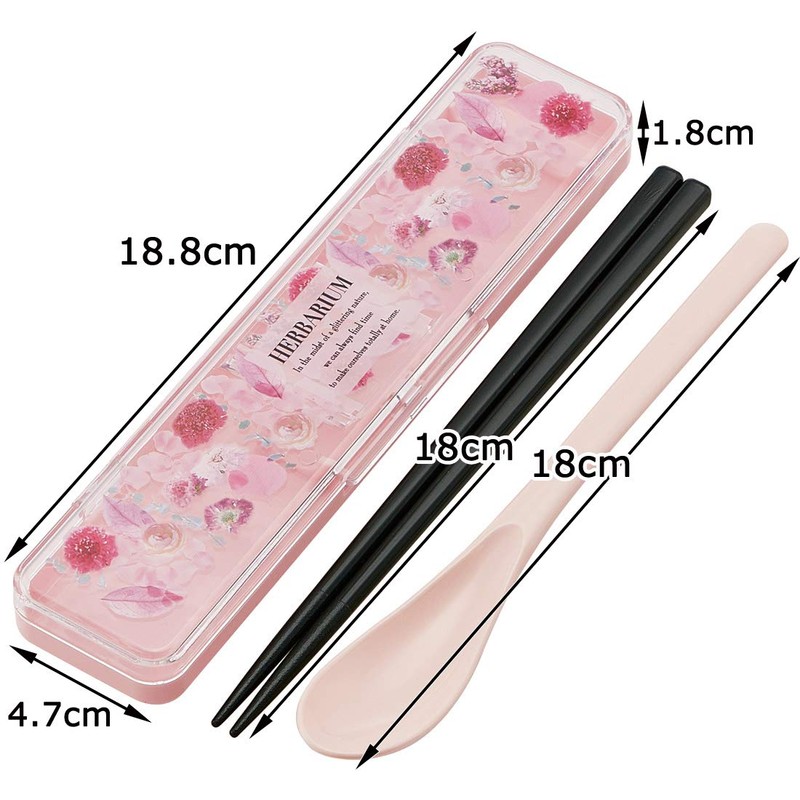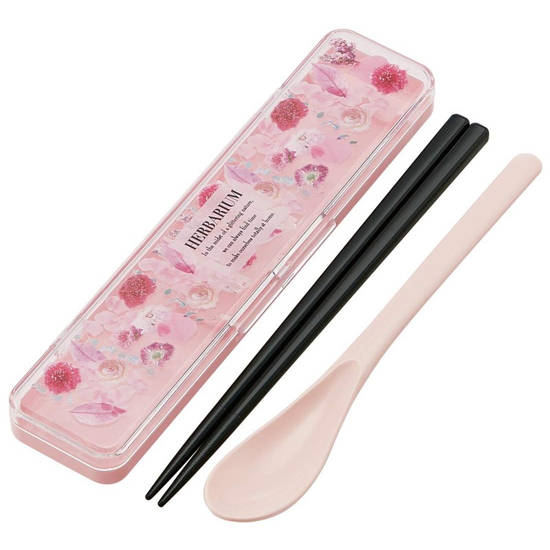Skater CCS3SA Herbarium Pink Chopsticks and Spoon Set, Made in Japan