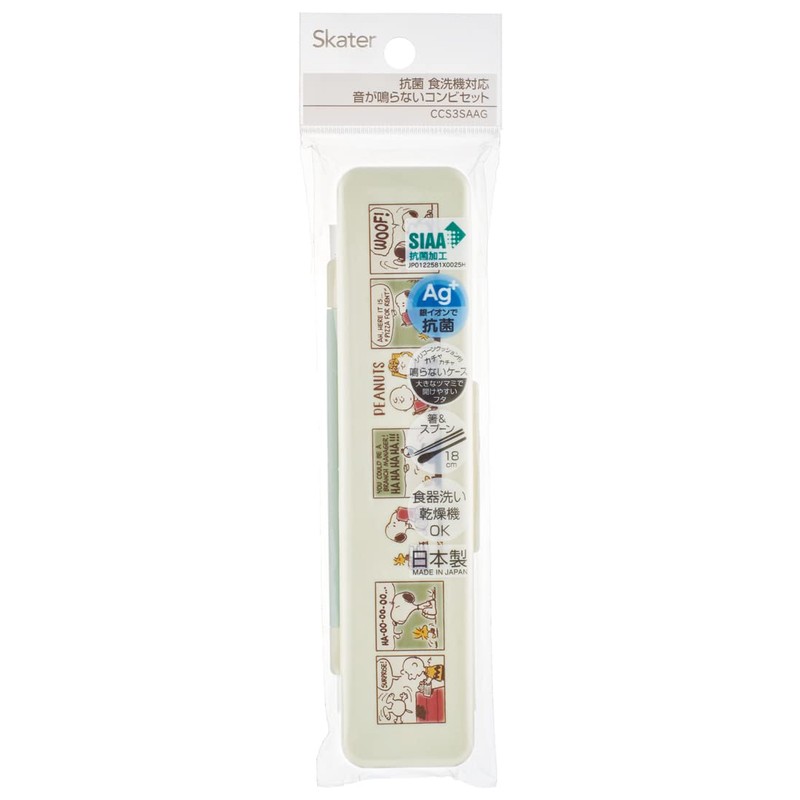 Skater CCS3SAAG-A Snoopy Comic Chopsticks & Spoon Set, 7.1 inches (18 cm), Antibacterial for Adults, Made in Japan