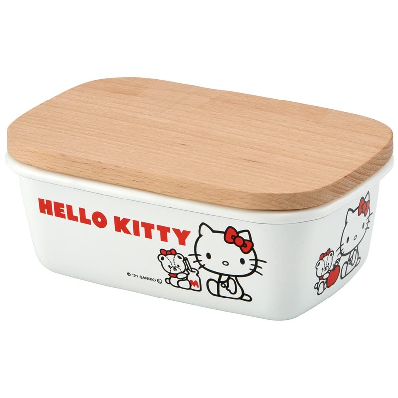Skater ENBT5-A Enameled Butter Case, Wooden Lid, 16.9 fl oz (500 ml), Kitty & Tiny Cham, Sanrio