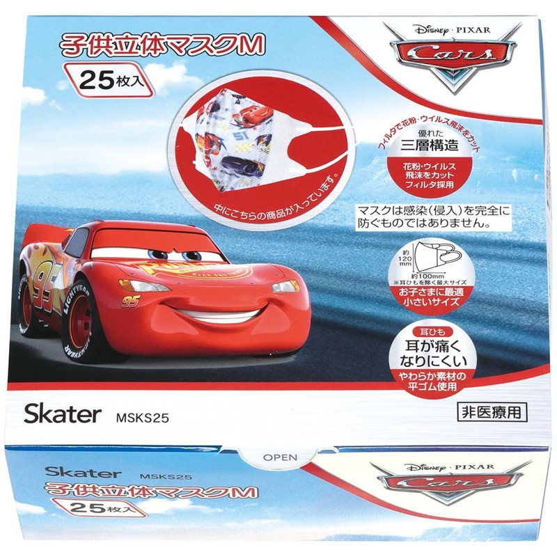 スケーター(Skater) 子供立体マスク カーズ M サイズ 120×100mm(2つ折り時) ディズニー 三層構造 不織布 男の子 男子 MSKS25 25枚入り
