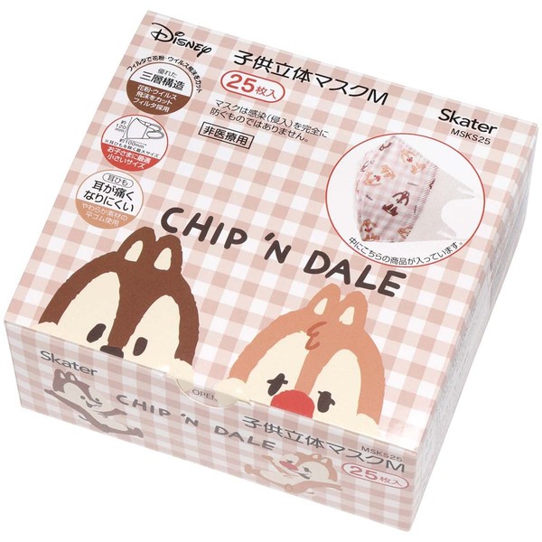スケーター(Skater) 三層構造 不織布 立体 マスク M 子供用 25枚 ディズニー チップ&デール MSKS25-A
