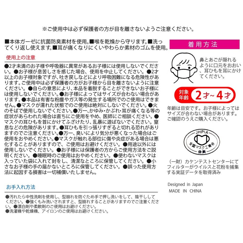 - Material: Main: Gauze: 100% cotton (a material that is antibacterial and deodorizing), Ear strap: Polyester, Polyurethane, Packaging material: Polypropylene