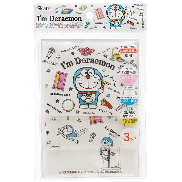 Skater MSKG1 12-Layer Gauze Mask for Children, Ages 3 - 10 Years, 3 Masks, Antibacterial, Odor Resistant, Design: I'm Doraemon the Tool Maker, Sanrio, 4.7 x 3.5 inches (12 x 9 cm)