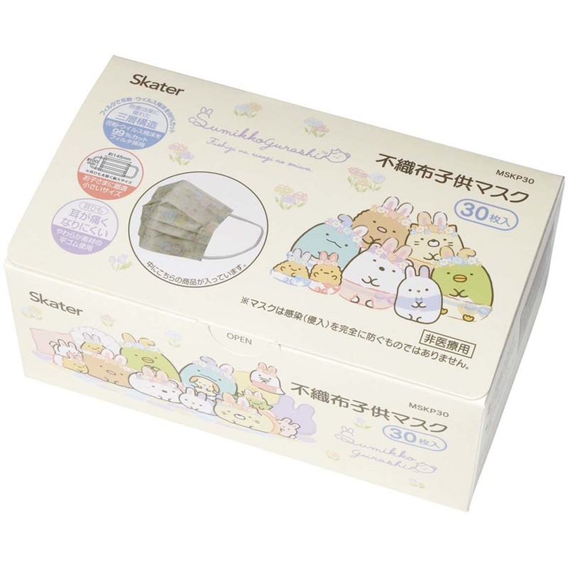 Skater MSKP30-A Three-Layer Non-woven Mask, For Kids, 30 Masks, Boxed, Sumikko Gurashi Rabbit