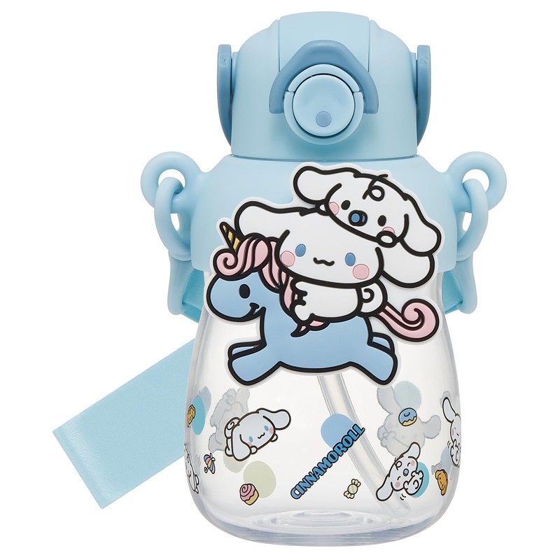 - Material: Saturated polyester resin; Cover: Polypropylene; Handle: Thermoplastic elastomer; Handle Clasp: ABS resin; Drinking mouth/straw/mascot: Silicone rubber; Strap Clasp: Nylon, Spring: Stainless steel
