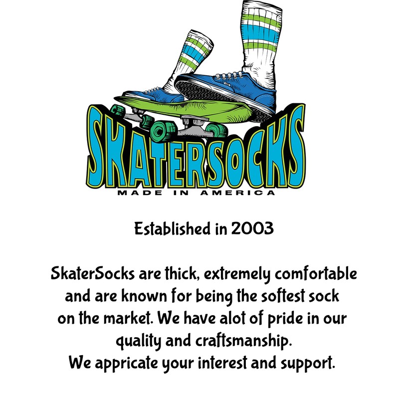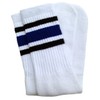 SKATERSOCKS 19" Mid calf White tube socks with Black-Royal Blue stripes style 3