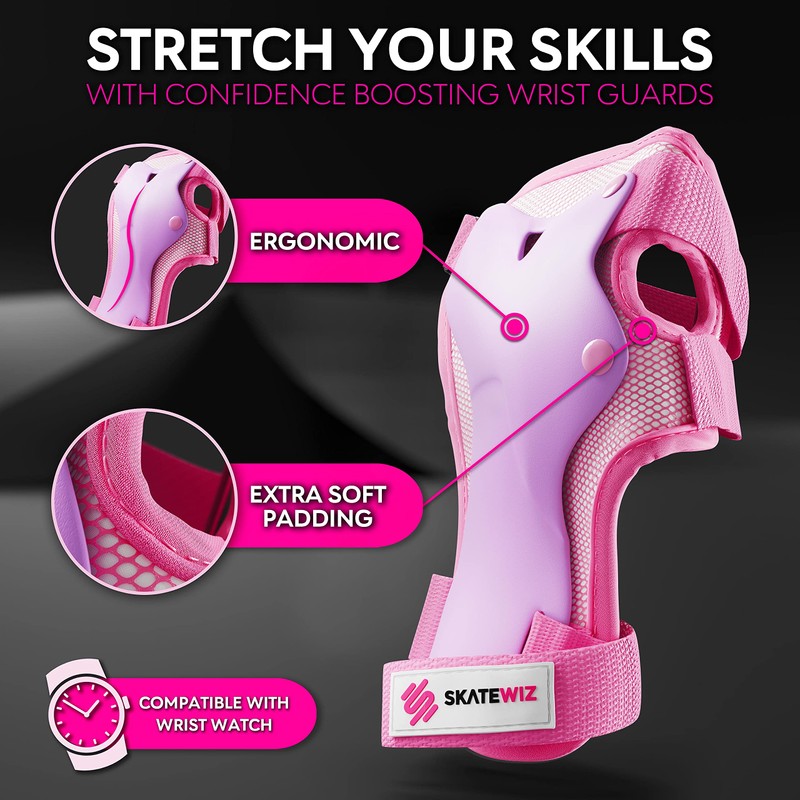 SKATEWIZ Skateboard Pads Adult - Wrist Guards for Skating Adult - SMASH - Size L/XL Pink Purple - Knee Pads Skating, Knee Elbow Pads Adult, Roller Skate Accessories - Skate Pads, Ice Skates Men