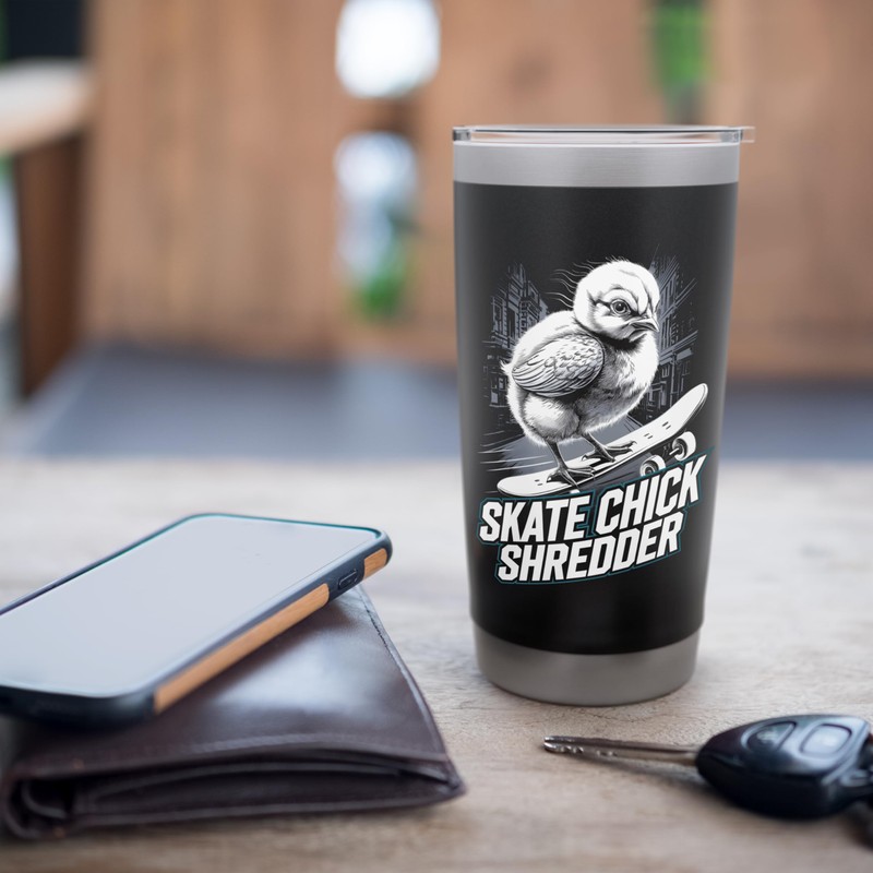 Skating Baby Chicks Skate with Skateboard Cute Skateboarding Stainless Steel Insulated Tumbler