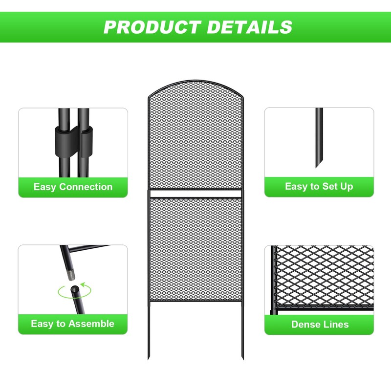- 2025 Newest Dense Mesh Panel: This decorative garden fence features an arched shape and dense artistic lines, making it both protective and decorative. In addition, each panel adopts vinyl PVC powder coating and pickling process, which has super anti-rust performance and is not afraid of bad weather.