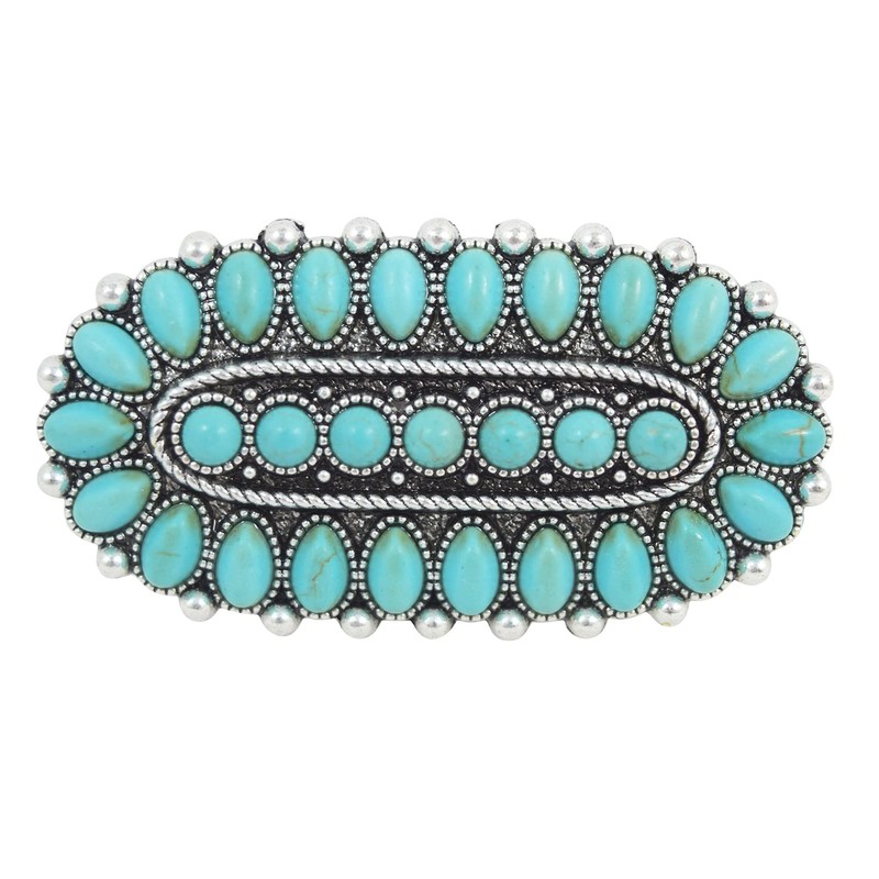 - STUNNING STONES: Beautiful faux turquoise Howlite stones arranged in a traditional Western pattern, available in cream, turquoise, or pink colors