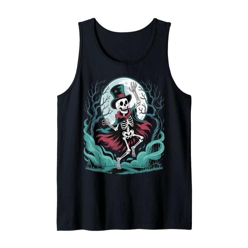 Skeleton Dancing Under The Moon Funny Spooky Tank Top
