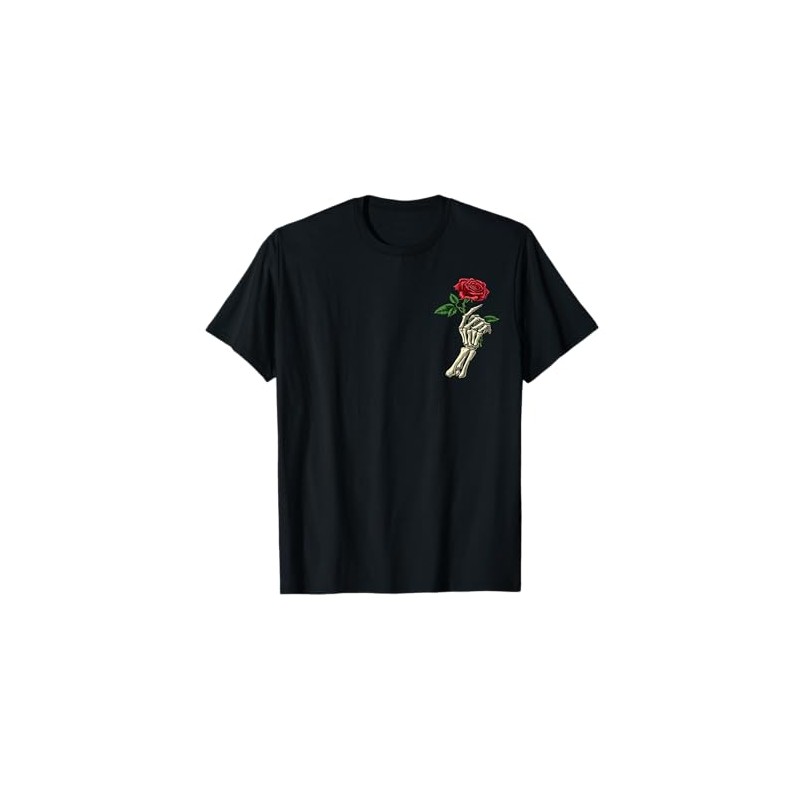 - This Graphic shows a skeleton hand holding a red rose flower. Ideal for red rose lover, tattoo lover and gothic lover, who loves deep red roses with thorns.