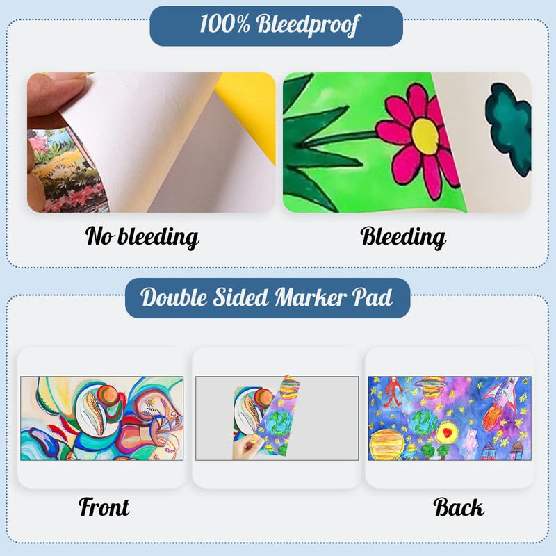 - Compatible with Marker Art Supplies: The Marker Paper Pad is designed to work perfectly with all kinds of marker art supplies, such as alcohol oil and water-based markers, colored pencils, pens, and pastels. Whether you're a beginner or a professional artist, this sketchbook is perfect for all skill levels.Compatible with Marker Art Supplies: The Marker Paper Pad is designed to work perfectly with all kinds of marker art supplies, such as alcohol oil and water-based markers, colored pencils, pens, and pastels. Whether you're a beginner or a professional artist, this sketchbook is perfect for all skill levels.
