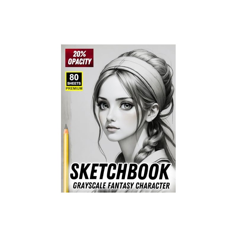 Sketchbook – Grayscale Fantasy Character Art | 80 Sheets Premium, 20% Opacity...