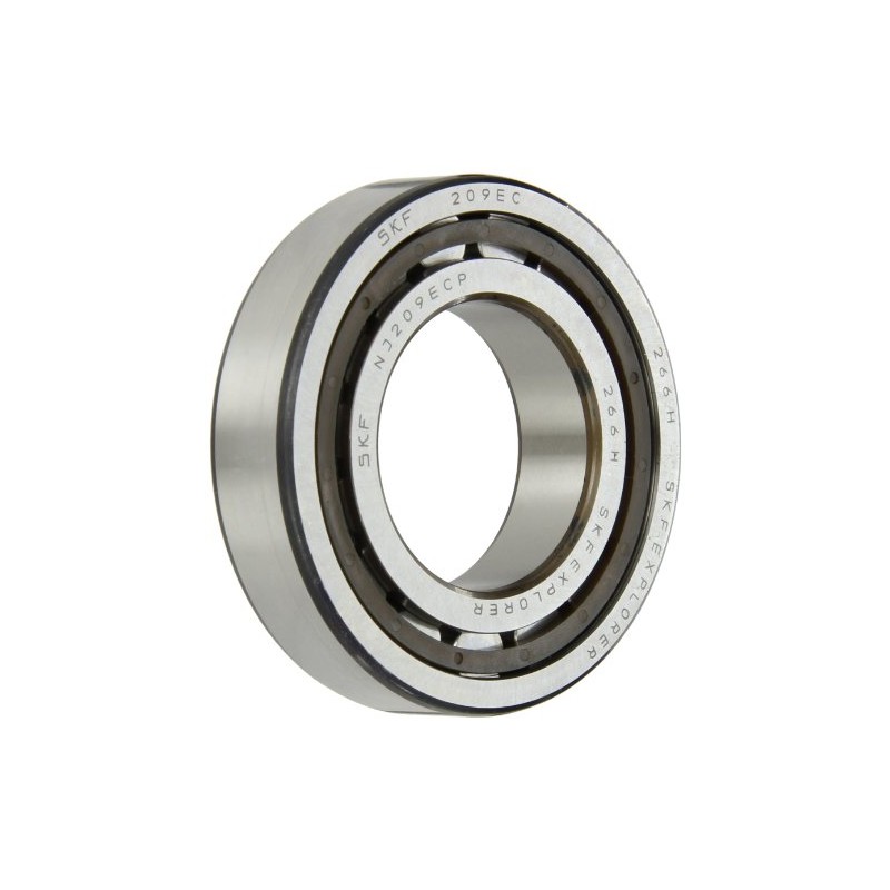 SKF NJ 209 ECP Cylindrical Roller Bearing, Removable Inner Ring, Flanged, High Capacity, Polyamide/Nylon Cage, Metric, 45mm Bore, 85mm OD, 19mm Width, 8000rpm Maximum Rotational Speed, 14400lbf Static Load Capacity, 13600lbf Dynamic Load Capacity