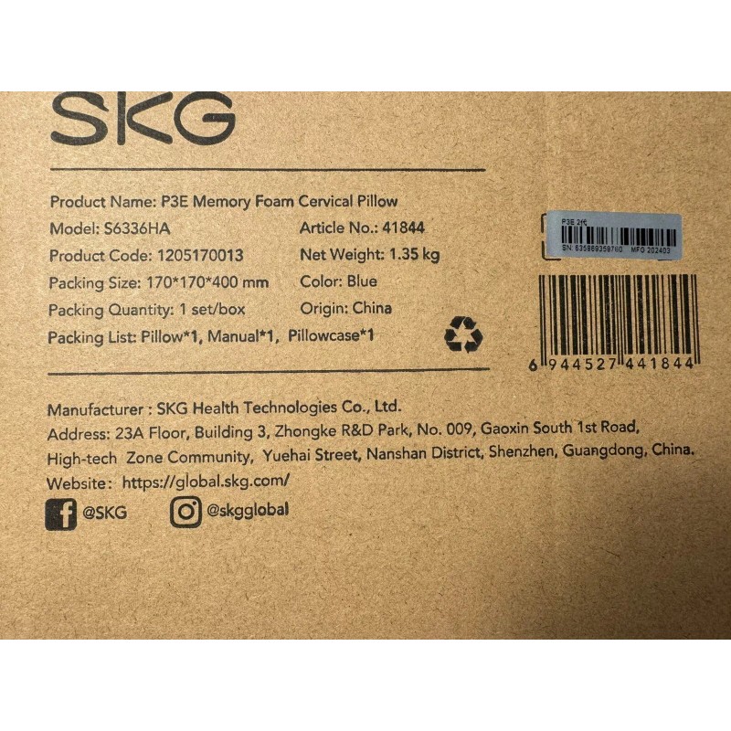 The stylish light blue color adds a touch of serenity to your bedroom decor, complementing a wide range of bedding themes. With its standard size dimensions of 14.8x7.05x6.18 inches, this SKG-branded pillow integrates seamlessly into your sleeping space. Ideal for anyone seeking an upgrade to their sleep experience, it's more than just a pillow—it's a promise of a good night’s rest.