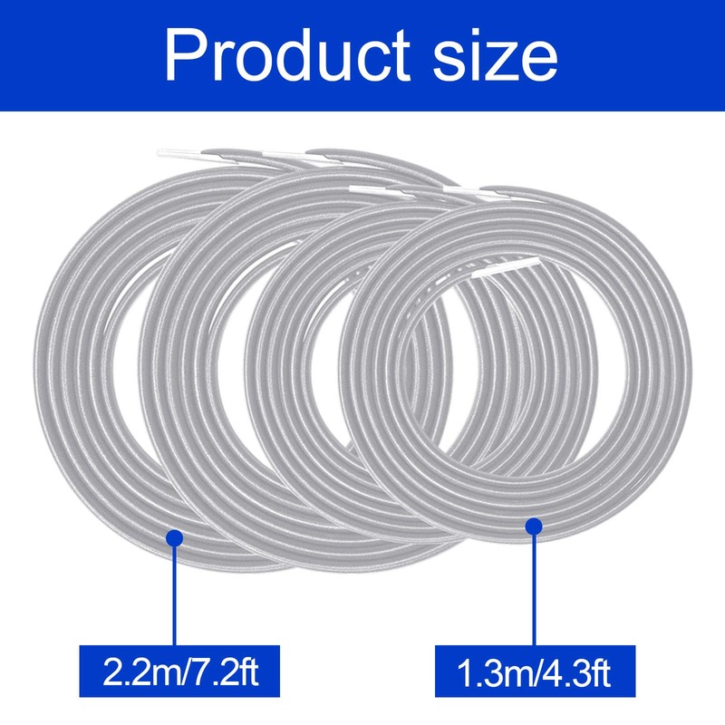 - Longer Cords Than Others: Replacement cords for zero gravity chairs have two sizes, the short elastic cord is about 1.3m(51 inches), the long elastic cord is about 2.2 m(87 inches), diameter is 4.5mm.