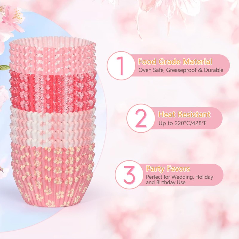 - What You Get - Package included 400 pieces of pink floral cupcake liners in 4 different colors, and each color has 100 pieces of cupcake baking cups, the sufficient quantity can meet your various party needs.