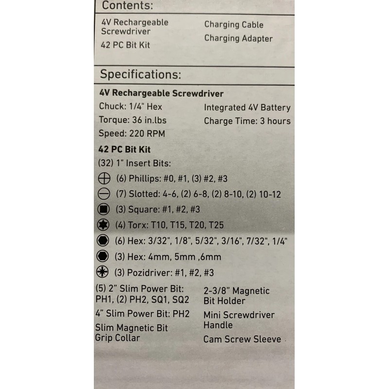 ***** 42-Piece Bit Set, Slim Bit Collar with 4X Magnetic Force, Cam Screw Sleeve and Micro USB Charger.