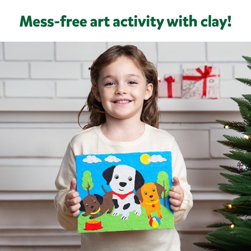 - CREATE ART WITH CLAY: Colour your canvas with air-dry clay and bring the picture of the little pups to life! Use the crafting tools to add textures and patterns - polka dots, squiggles, and more! This is the perfect mess-free kit to add to your art & craft collection!