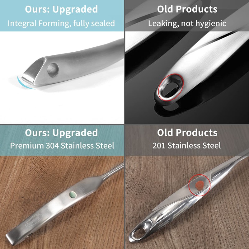 - Integral Forming. The Turner and the handle is made by integral forming of 304 stainless steel, more durable - No longer have concerns of loose handles. Smooth surface for preventing from dirty. Easy to clean, dishwasher safe.