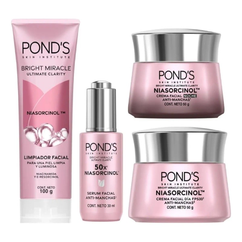 🌸🧖♀️ Cuida tu piel con la eficacia comprobada del Skin Care Kit 4 Pasos Niasorcinol Pond’s, un sistema integral que combina limpieza, tratamiento e hidratación para un rostro luminoso y renovado 💧🌞.