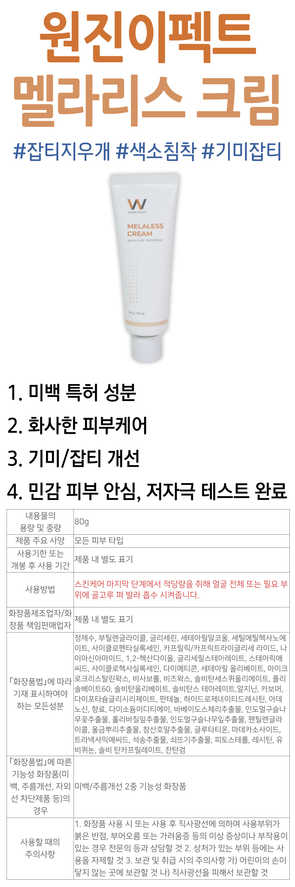 피부 케어 화이트닝 멜라리스 크림 원진이펙트 저자극 스킨 로션 얼굴 이마 팔자 목 눈 입가 미간 주름 화