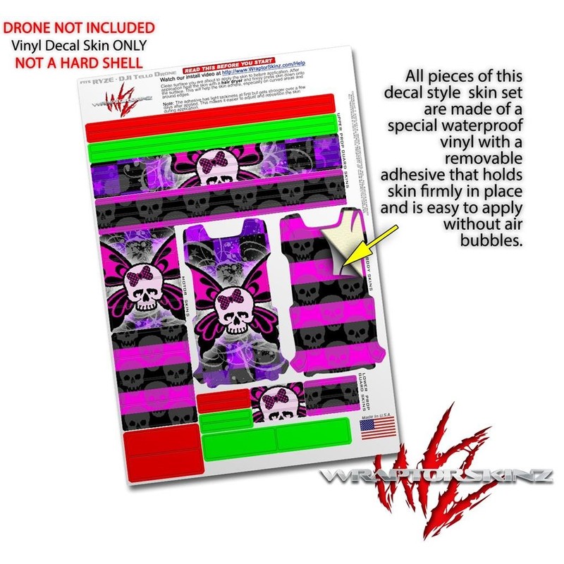 Skin Decal Wrap 2 Pack for DJI Ryze Tello Drone Butterfly Skull Drone NOT Included