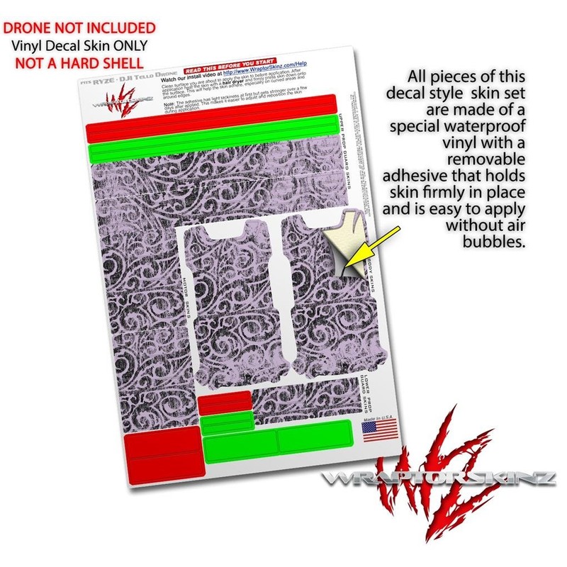 Skin Decal Wrap 2 Pack for DJI Ryze Tello Drone Folder Doodles Lavender Drone NOT Included
