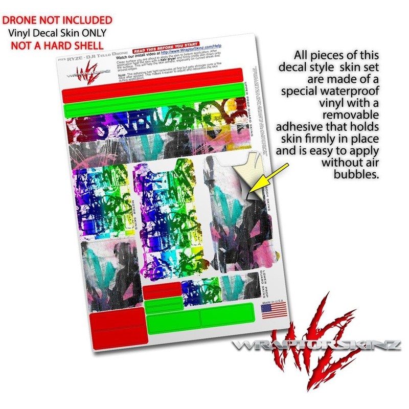 Skin Decal Wrap 2 Pack for DJI Ryze Tello Drone Rainbow Graffiti Drone NOT Included