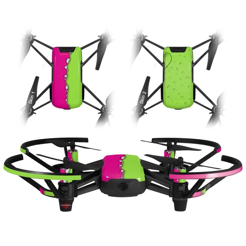 Skin Decal Wrap 2 Pack for DJI Ryze Tello Drone Ripped Colors Hot Pink Neon Green Drone NOT Included