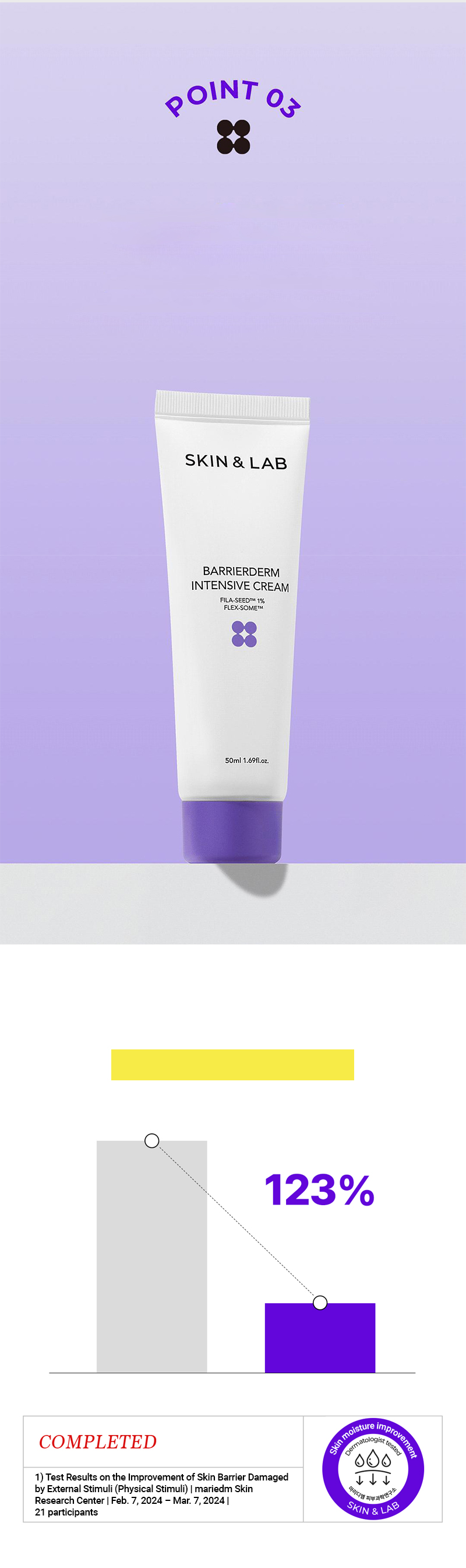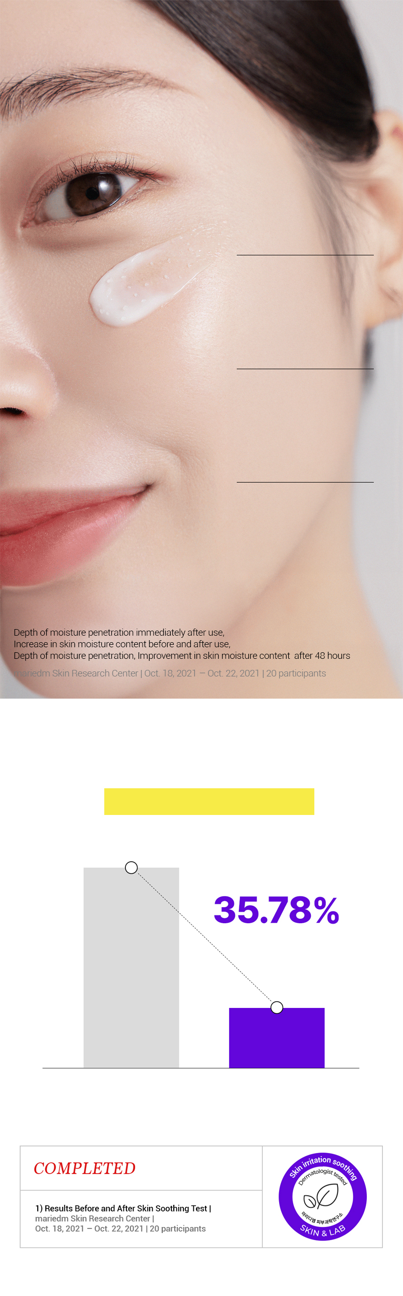 Obtained Excellent grade from German dermatest for 2021. Completed test for skin irritation. Completed test for 48-hour-long moisturizing effect.