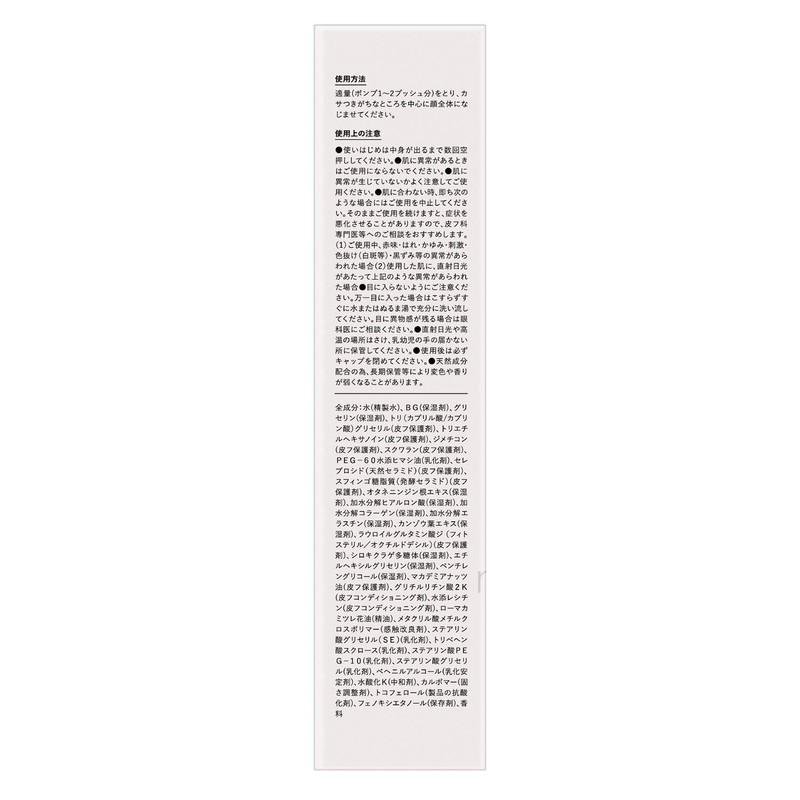 - 【Wセラミド配合でうるおう肌へ】保護効果と浸透(角層まで)効果の高いダブルのセラミド(天然セラミド、発酵セラミド)が、肌のバリア機能をサポート。乾燥や外的刺激から肌を守り、肌にうるおいを与えてすこやかな肌へ導きます。(セラミド:保護成分)
