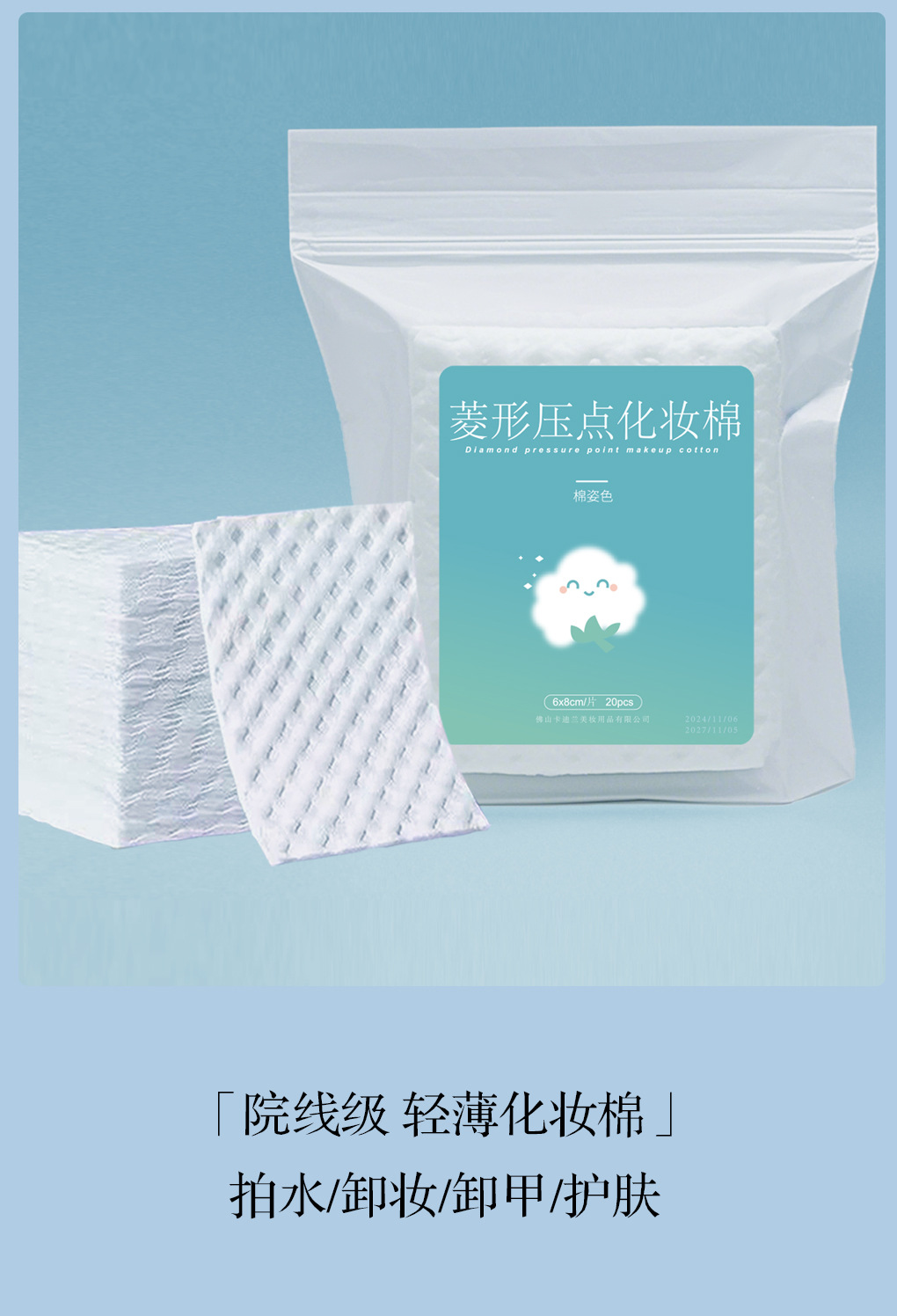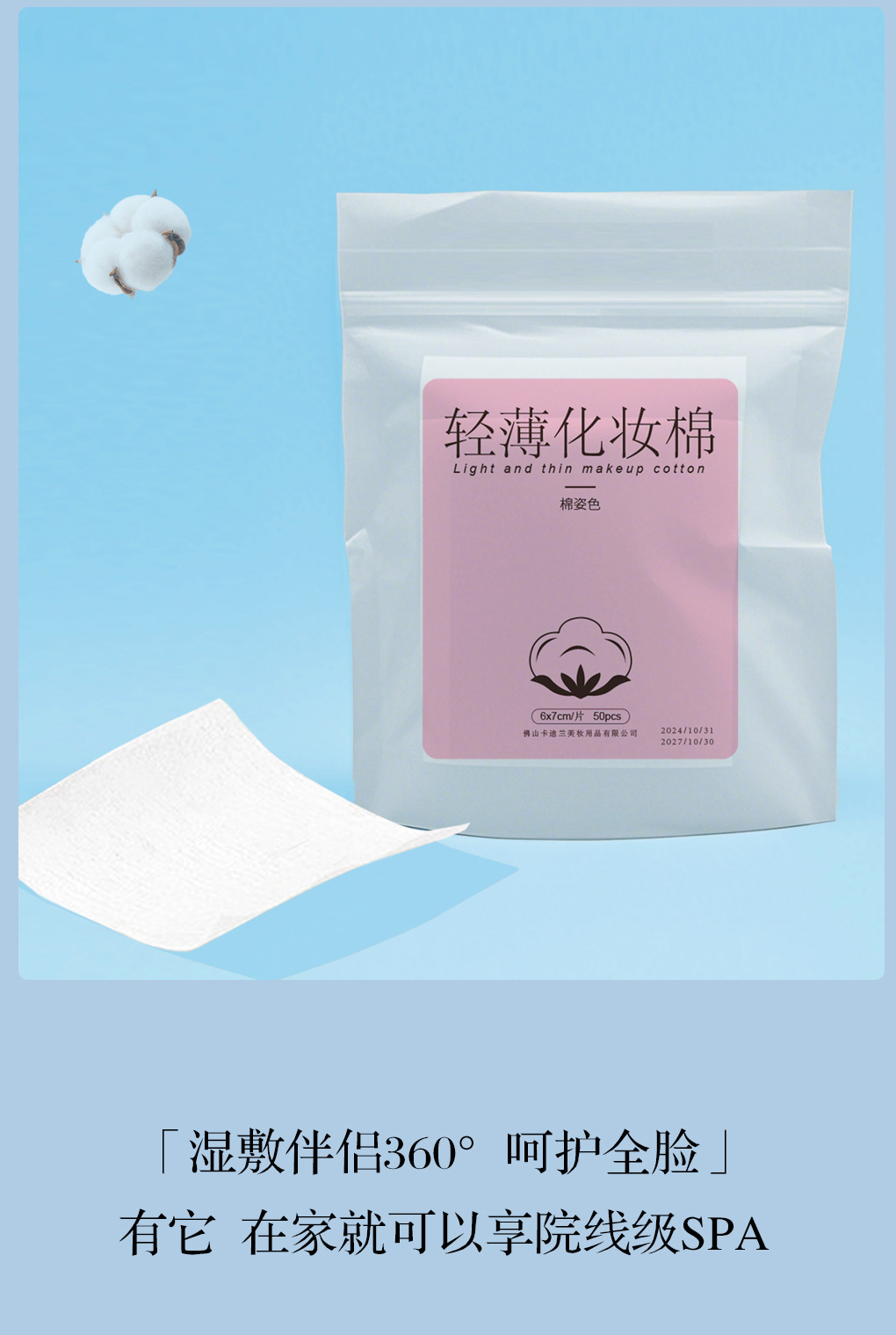 Skin Pack Cotton Pads: Moisturizing & Elastic Makeup Remover Pads (Thick/Thin, 50 Sheets) 1 Pack 15ea