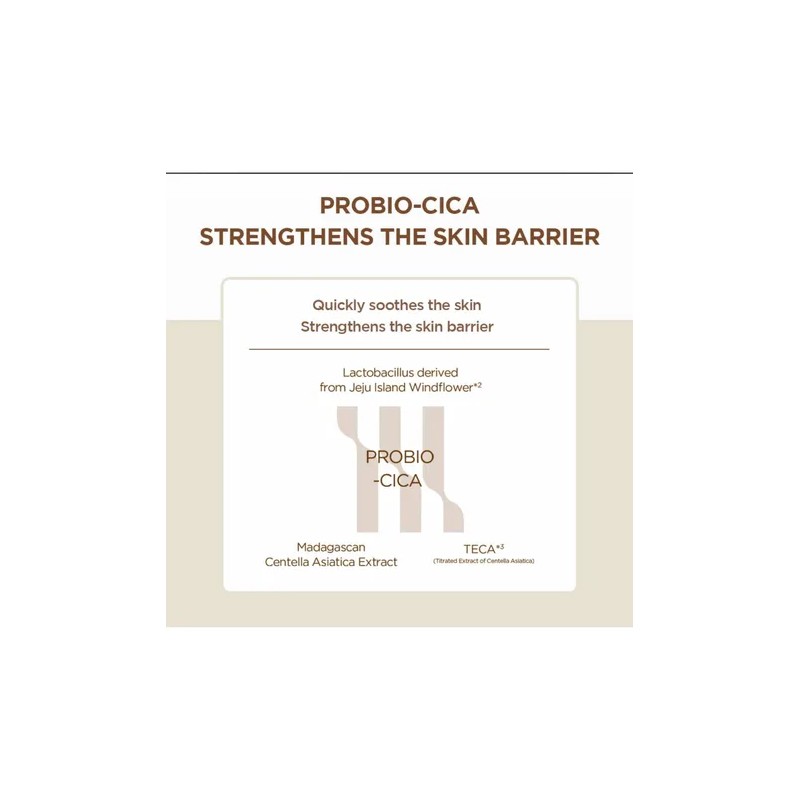 La línea Probio-Cica incluye Centella Asiática fermentada para estimular un microbioma de la piel saludable y cuenta con los poderosos antioxidantes de Centella Asiática para reconstruir y promover una barrera cutánea saludable. Aporta una hidratación intensa y equilibra los niveles de sebo, reduciendo el acné, zonas secas, irritación de la piel y previene los signos de envejecimiento.