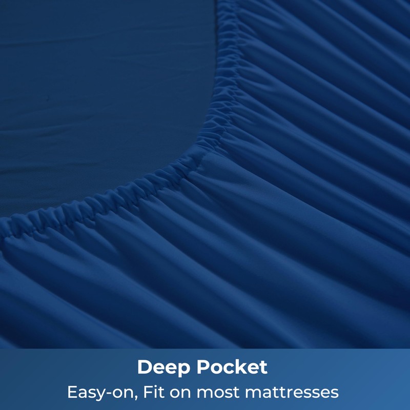 SKINA Bed Sheets Queen Size Set - 4 Pieces: Deep Pockets, Double Brushed Fabric, Exceptional Softness, Breathability, and Wrinkle Resistance - Eco-Friendly Luxury - Classic Navy Blue.