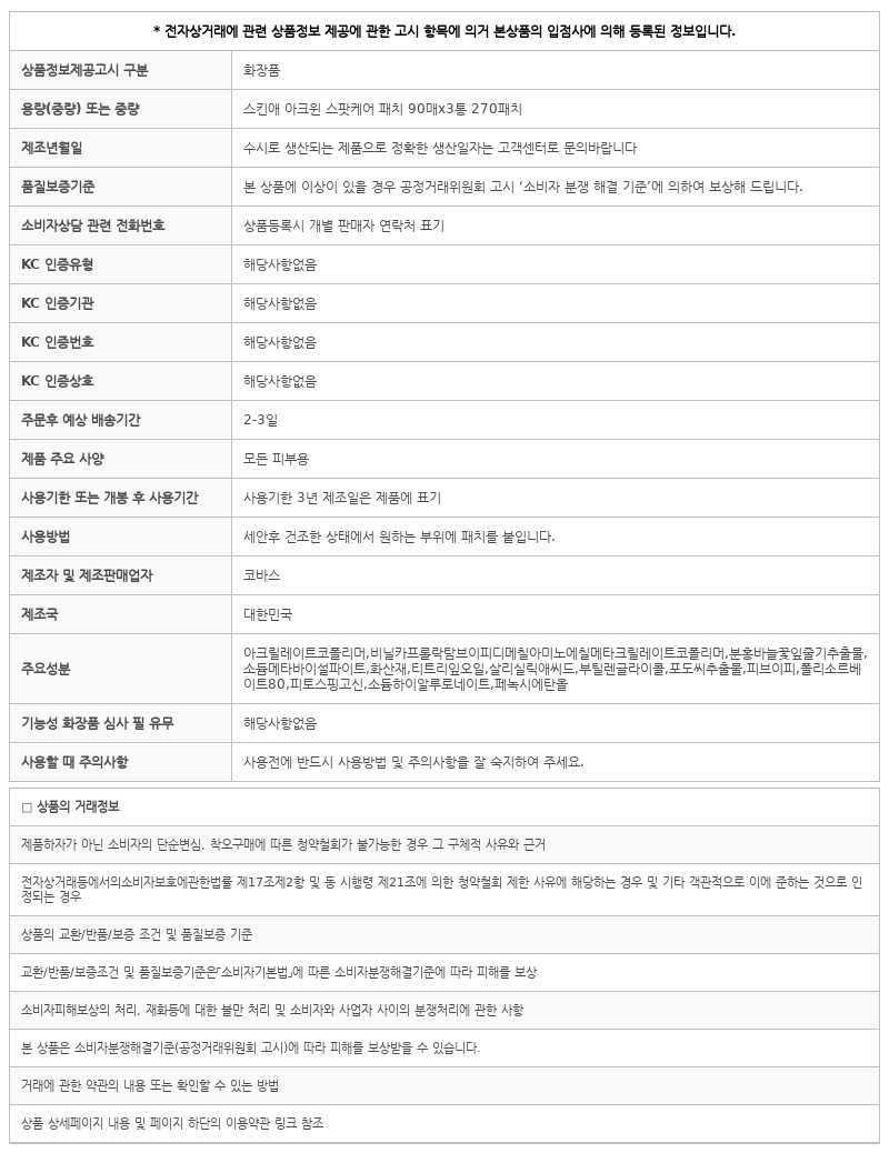 스킨애 아크윈 스팟케어 패치 90매x3통 270패치