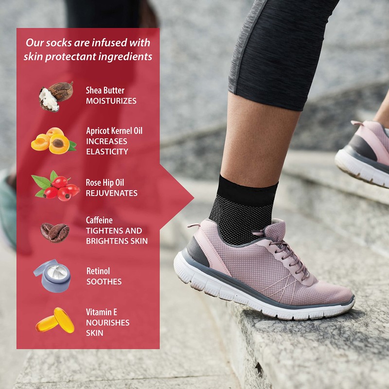 - NOURISH SKIN WHILE YOU WEAR with patented microencapsulation technology. Body heat and friction activates release of Shea Butter, Apricot Kernel Oil, Retinol, Rose Hip Oil, Vitamin E & Caffeine to help increase elasticity, moisturize, and rejuvenate skin to repair and prevent cracking and scaling