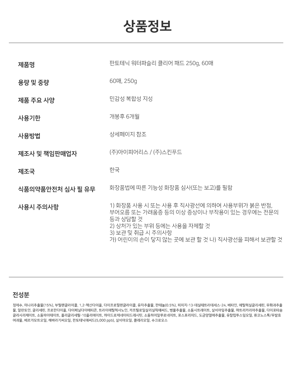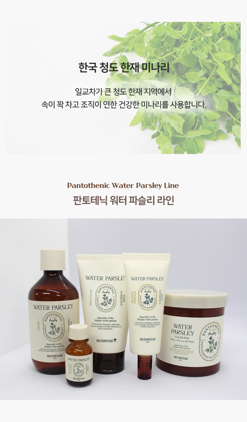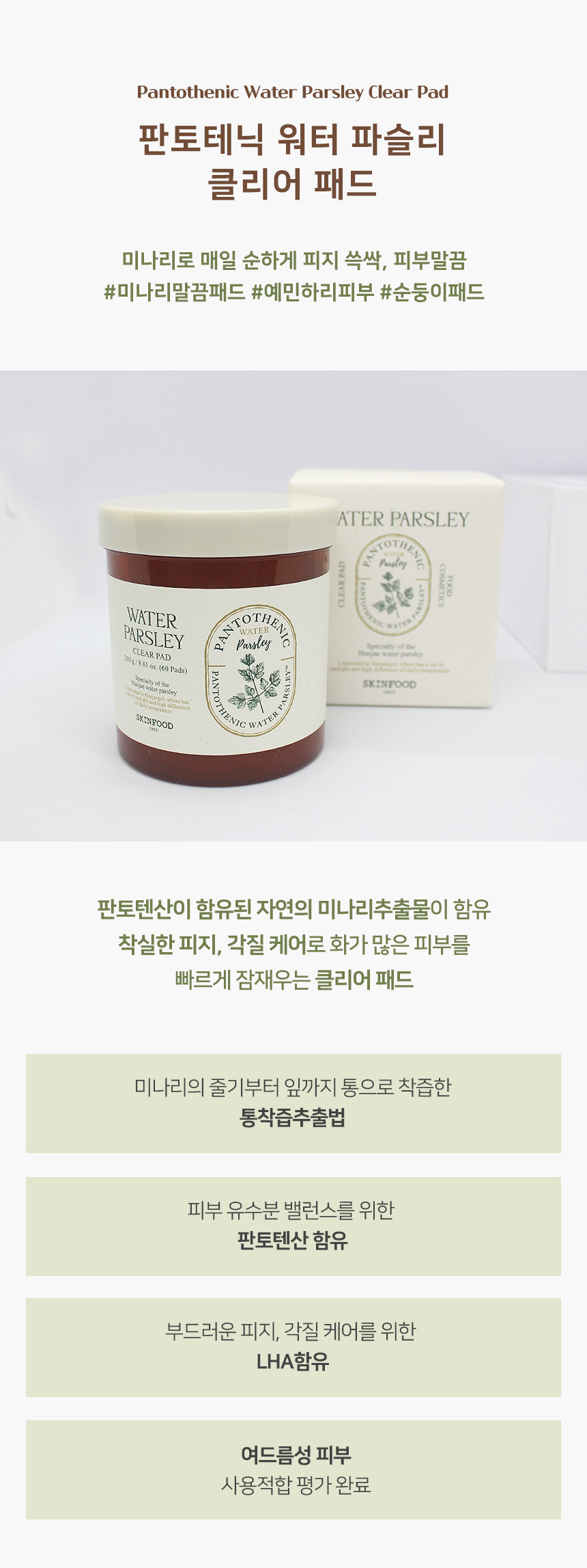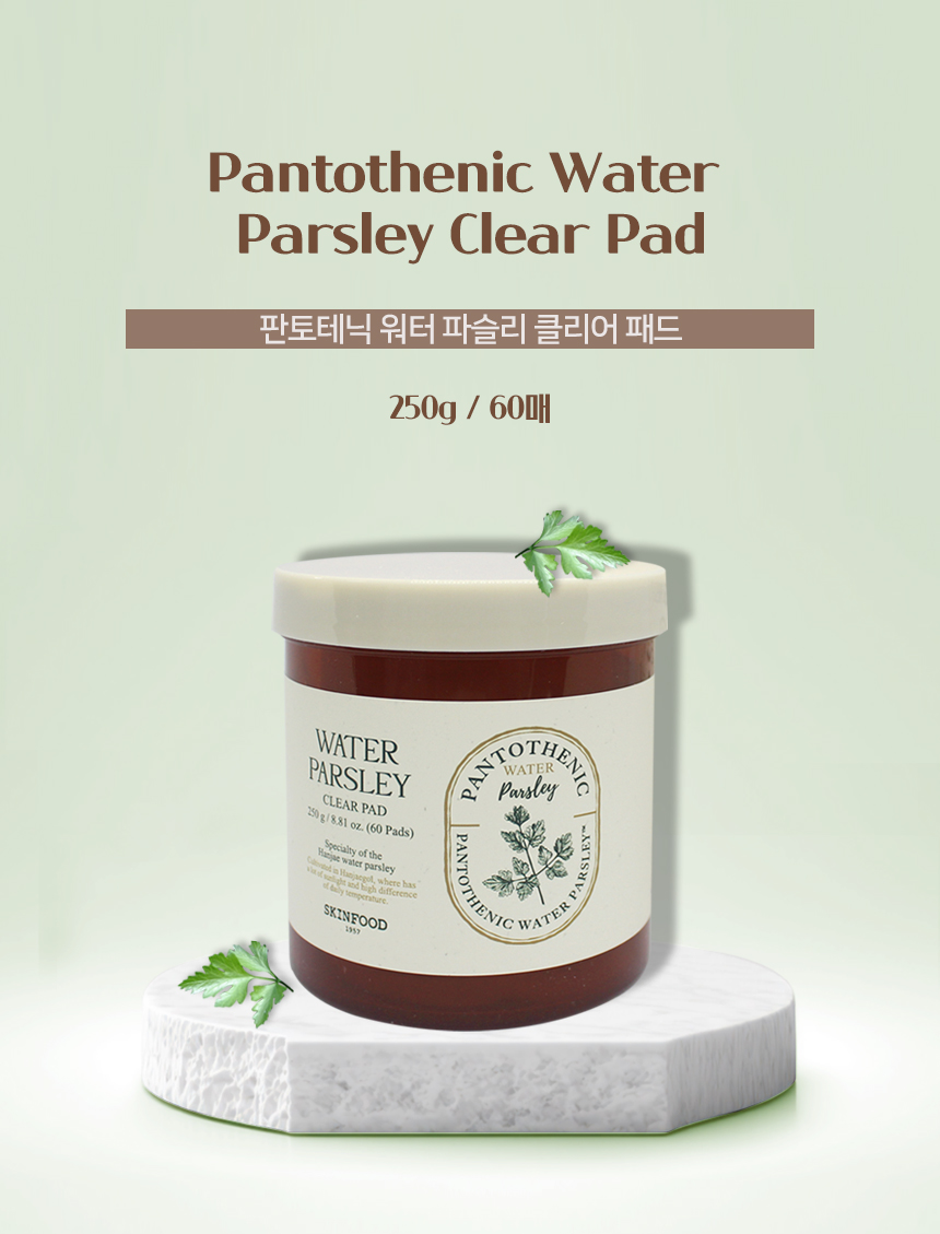 SKINFOOD Pantothenic Water Parsley Clear Pads 250g, 60 sheets / 스킨푸드 판토테닉 워터파슬리 클리어 패드 250g, 60매