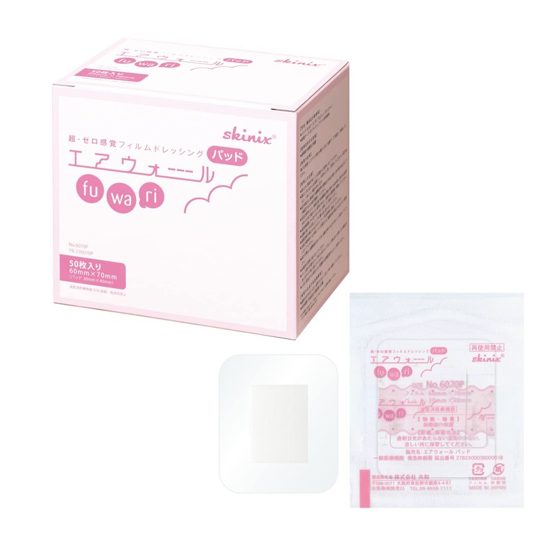skinix エアウォールふわりパッド 大判 防水 絆創膏 60×70mm 50枚 1箱 パッド付き 超ゼロ感覚 フィルムドレッシング 透明 滅菌 YB-226070P