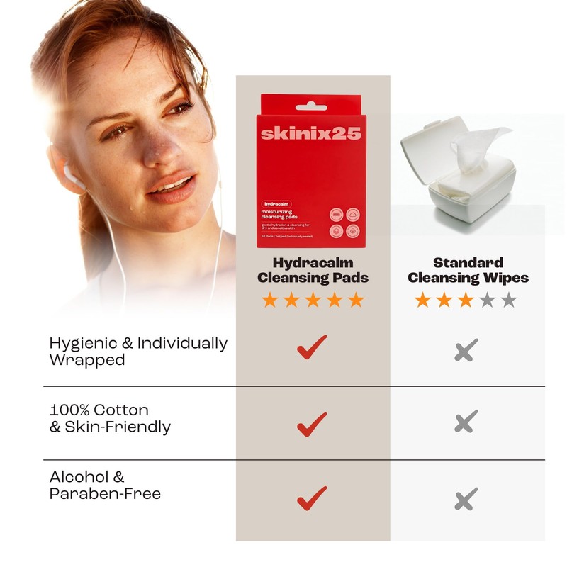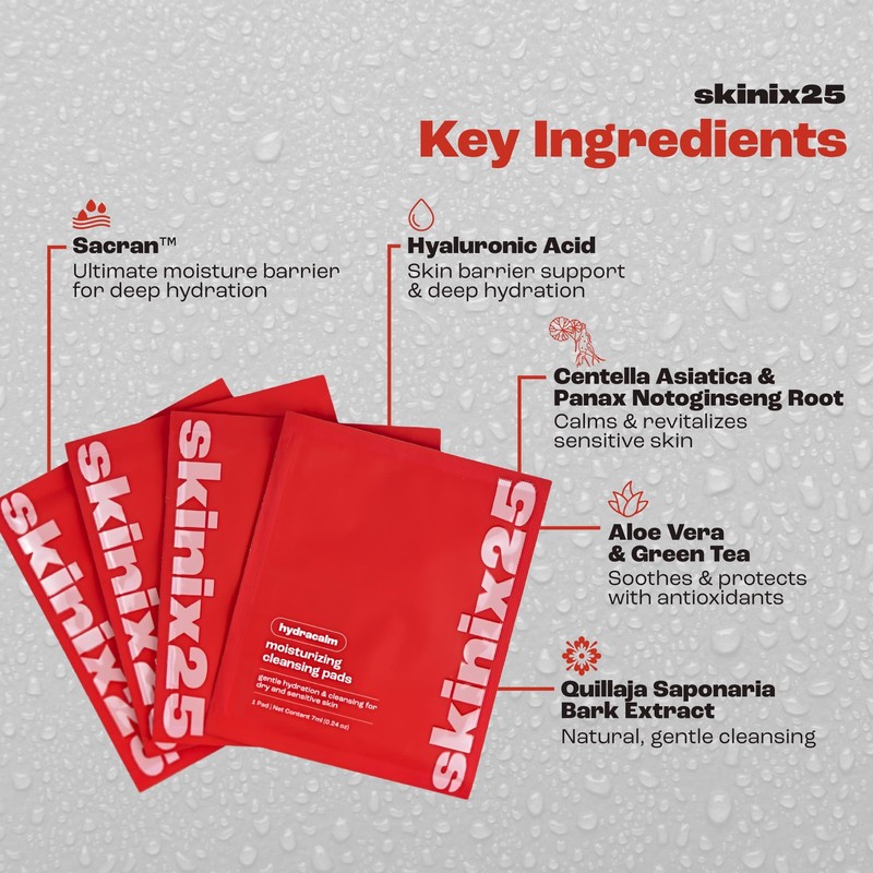 skinix25 Skinix25 Hydracalm Moisturizing Cleansing Pads C Hydrating & Soothing, Large & Thick Face Wipes for Dry & Sensitive Skin, Individually Wrapped C 4 Boxes (40 Pads)