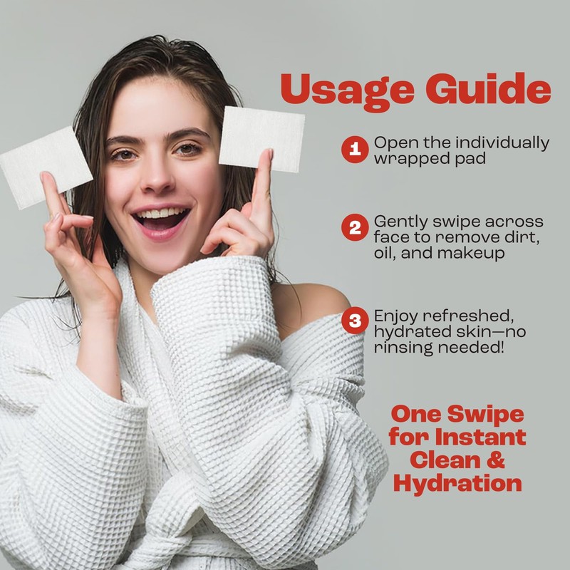- Individually Wrapped for Freshness & Convenience C Each pad is individually sealed, ensuring it stays fresh and effective until the moment you use it. Perfect for daily cleansing, makeup removal, and refreshing your skin after workouts, travel, or a long day. No more dried-out wipesjust a hygienic, mess-free cleansing experience.