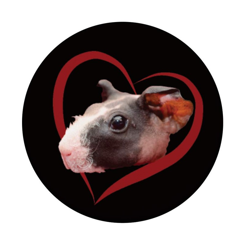 - Designed for guinea pigs, pigs or rodent lovers. The bald, beautiful, hairless guinea pig face is surrounded by a red heart.