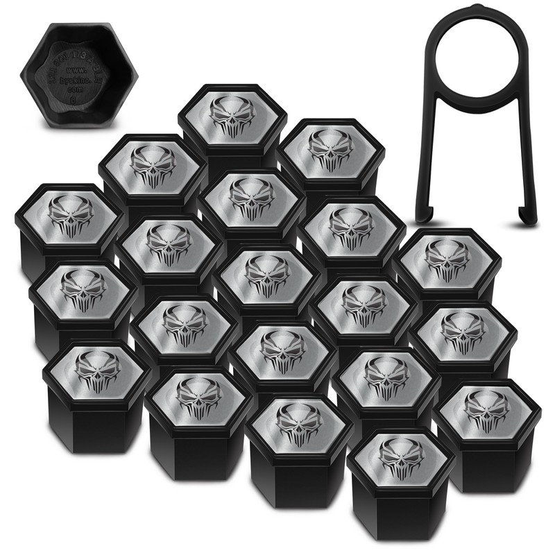 SkinoEu 20 x Radschrauben Radmuttern Felgenschloss Muttern Kappen Radmutternabdeckungen Radschraubenkappen Radmutternkappen Kunstsoff Abdeckungen Universal 17 mm Totenkopf Silber Schwarz Schädel NC 18