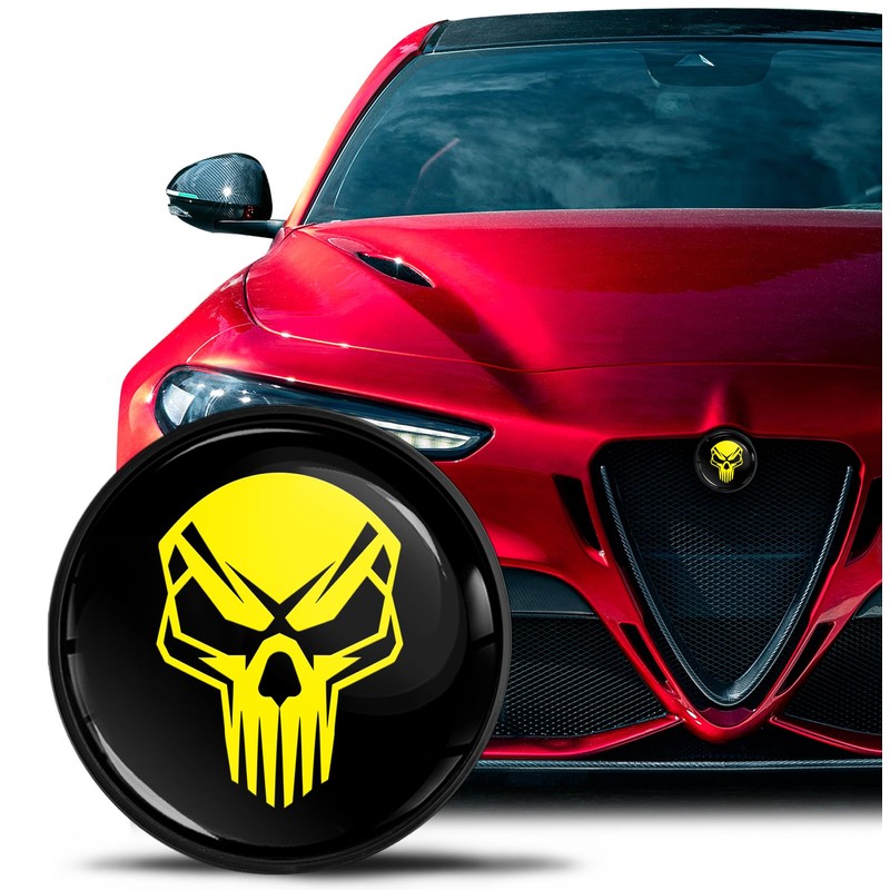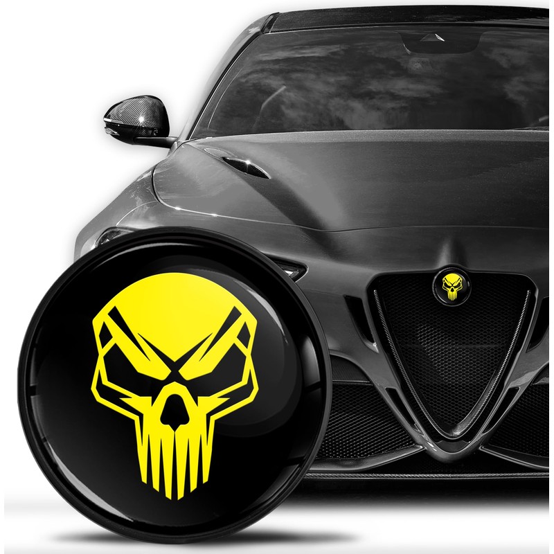 SkinoEu Compatible with Alfa Romeo Emblem Badge Bonnet/Boot 74 mm for Giulietta 940 MiTo 156 147 159 GT Brera Spider 939 Black Yellow Skull EA 6