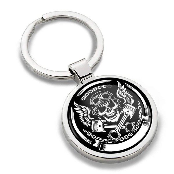 SkinoEu® Keychain Skull with Moto Helmet and Pistons Motorcycle Metal Keyring Car Moto Key Fob Gift Metal Ring Chain KK 177