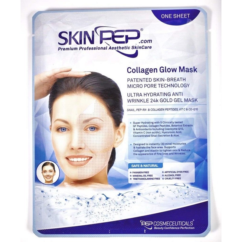 SkinPep Collagen Glow Face Masks + Hydrogel Facial Masks with Hyaluronic Acid and 24k Gold (Pack of 1)