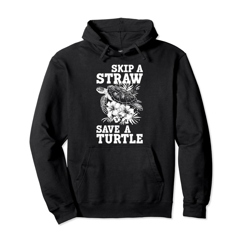Skip A Straw Save A Turtle Sea Turtle Scuba Diving Flowers Pullover Hoodie