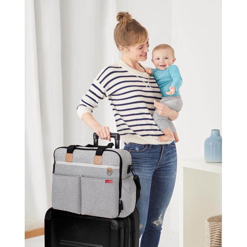 Skip Hop Diaper Bag: Iconic Duo Weekender, Extra Large Capacity with Changing Pad & Stroller Attachment, Grey Melange