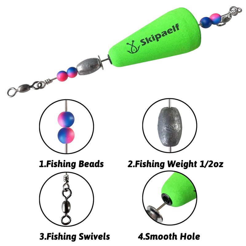 - 【Sound-Producing Corks】As you pull your fishing line or fish pull your bait, the beads will hit the corks and the metal eyelets,producing a distinctive popping sound that mimics the activity of prey in the water. The sound helps in attracting fish from a distance,increases the likelihood of a strike.